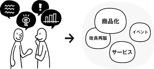 事例(概要):無印良品の「くらしの良品研究所」やゼクシィの「花嫁カフェ」など、ユーザーの声を商品開発やコンテンツ作りに取り入れる共創プログラム。アンケートやワークショップ、投稿募集を通じてアイデアを収集し、公式で反映する。