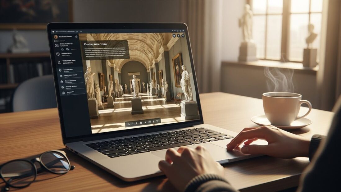 バーチャルツアーは、VR(バーチャルリアリティ)技術を活用し、館内を自由に見て回れる形式で、まるで現地にいるかのような臨場感を体験できます。